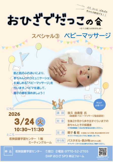 おひざでだっこの会 スペシャル③ ベビーマッサージ